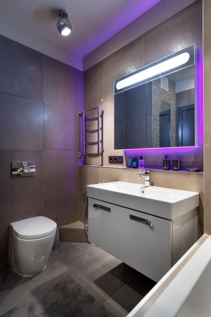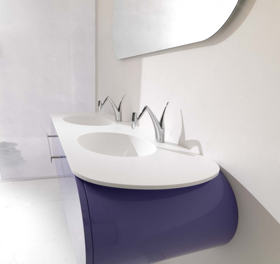 Purple color in the interior design of the bathroom is used not very often. We can say that this is in some measure a custom color for bathroom. At the same time, it is the perfect solution for your bathroom. It all depends on what shades of purple to use and with what colors it will be in harmony. There is an incredible variety of shades of purple, so you can decide exactly what you need. We can also say that the purple color blends perfectly with the light tones and with a pink and black. For example, the combination of purple and pink for many people causes delight and admiration. Also a great combination will be purple and white. However all this is a matter of taste and only you must decide what kind of color combinations will be in your bathroom.