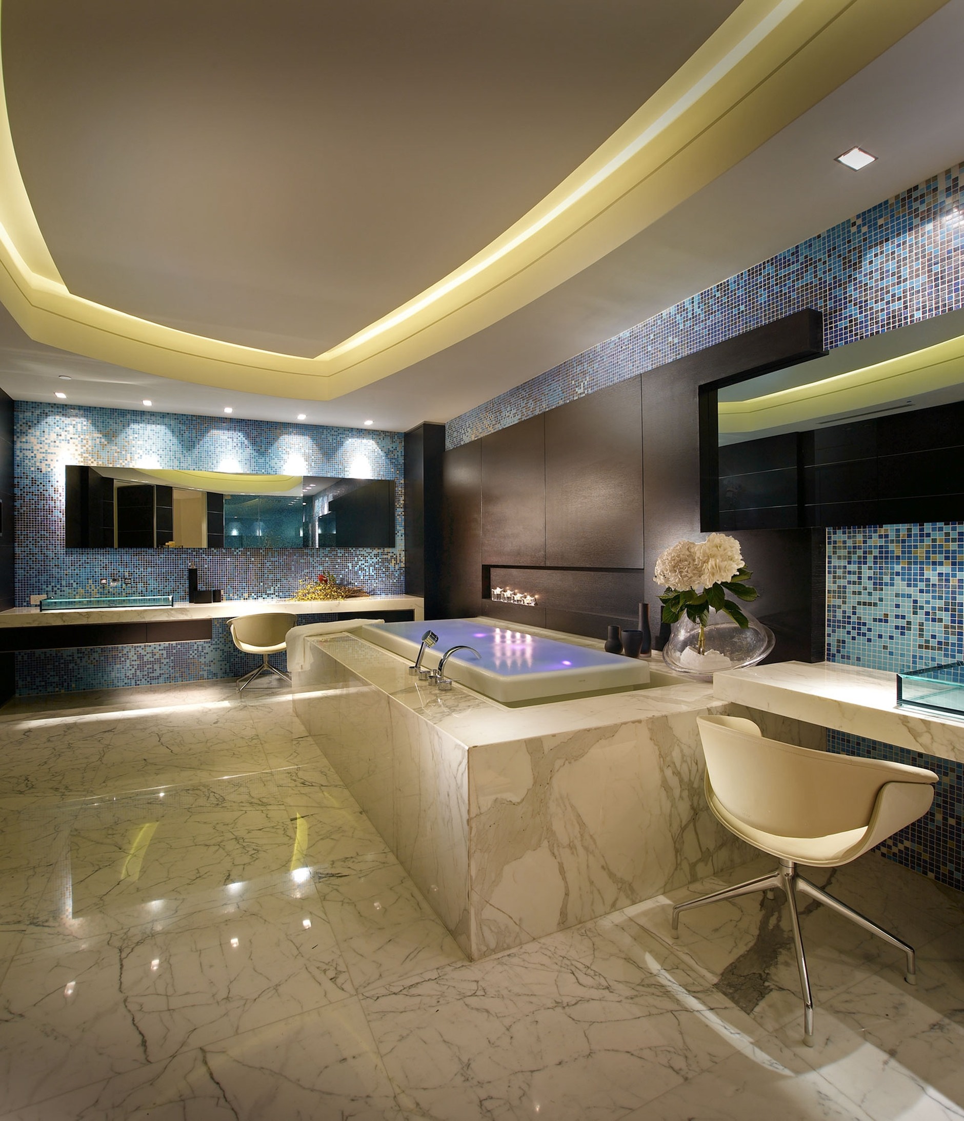 Excellent combination of marble and mosaics. You will love this bathroom interior design always.This is a cool professoinal picture.