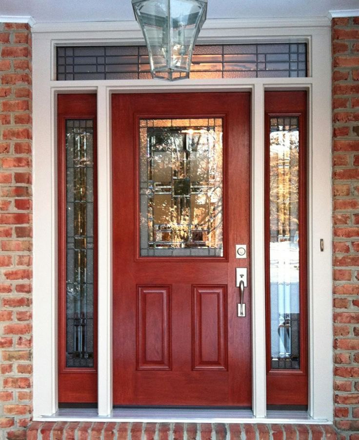 Front door with sidelights perform a lot of functions. First light enables you to not trip over of steps and conveniently open the door at night. Second is the design element of the central entrance. A variety of lamps and lighting can create a unique design.