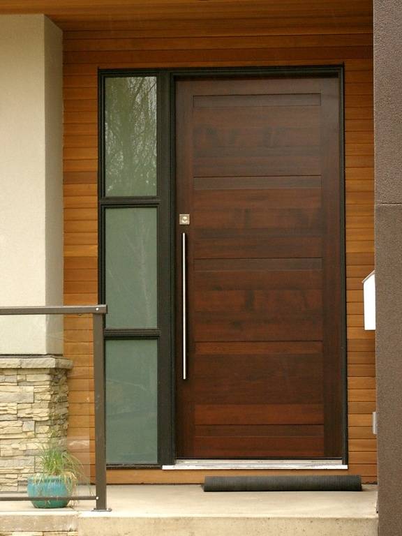The front doors have always been of great importance in the design of apartments and houses. Today there are many variations of the execution of the front doors for all tastes. The number of materials that are used constantly expanding to the front door. Popular glass doors reinforced impact resistant glass, forged metal doors with various motifs and patterns. Of course the classics has not been canceled and wooden doors are the most popular. Wood as a material can give a special atmosphere and charm to your guests who first saw the door at the entrance to your home. This article contains excellent examples of front doors wide variety of designs. This article contains a wide variety of options for door designs: wooden doors with glass windows and accents, swing doors, all-glass doors, the options with iron inserts, etc. This article contains excellent examples of front doors wide variety of designs. This article contains a wide variety of options for door designs: wooden doors with glass windows and accents, swing doors, all-glass doors, the options with iron inserts, etc. One of the important rules when choosing a door that’s how they will fit into the overall view of the entrance to your apartment or house. It is important to create a finished look. Front doors can be a central element or complement the overall look, it’s up to you. We hope you will find a perfect example in this article.
