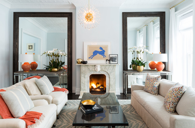 When designer Justine Cushing moved in her New York apartment in 1970, she had the living room walls painted a custom orange — a color she has never considered changing. It’s a dynamic backdrop for artworks by her grandfather, Howard Gardiner Cushing, and a red lacquer chinoiserie desk that is a family heirloom.