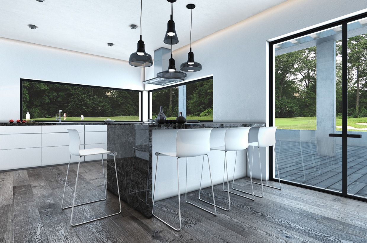The second home, situated in Israel, comes from architect Stanislav Kaminskyi. The home is 250 sq. meters (2690 sq. ft) and makes use of darkish grays, black, and white as its principal shade palette. The excessive distinction look shouldn’t be almost as reassuring because the extra delicate tones of the primary house, however it definitely provides its personal inventive attraction.