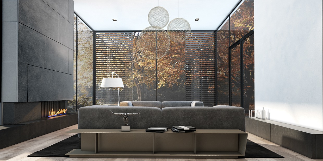 The final home additionally comes from Kaminskyi, however this time is a house situated in New Jersey and measuring 300 sq. meters (3229 sq. ft). The area could be very open, with towering ceilings and large image home windows searching onto the encompassing nature. The colour palette right here is extra in tune with that of the primary home, with tender grays, beige, and white. There’s additionally a peek into the distinctive inside courtyard that provides the decrease degree some architectural curiosity as properly.